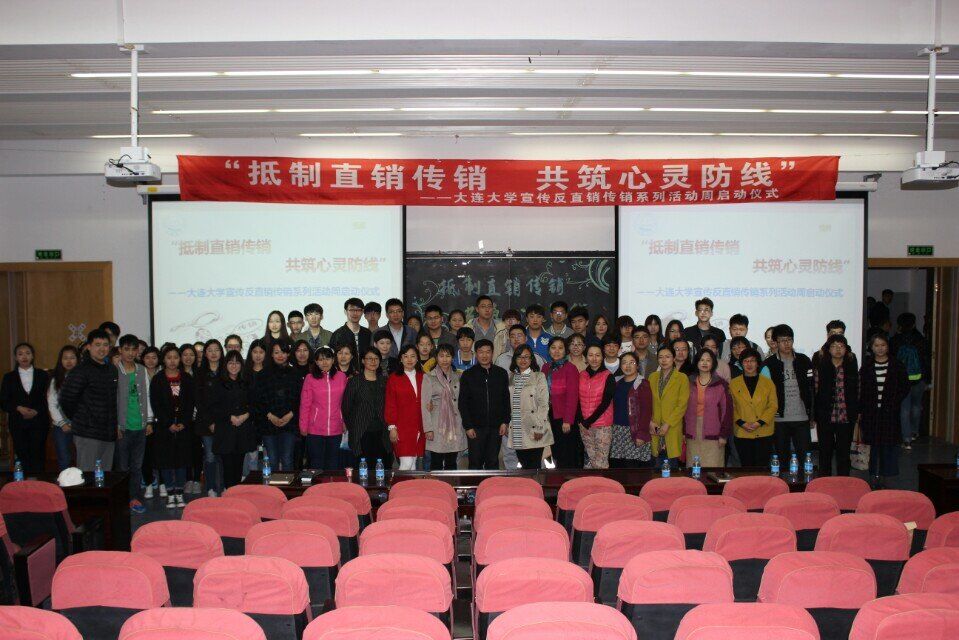 4月12日,活动周启动仪式及反直销传销讲座为活动周拉开帷幕。全校各学院辅导员代表参会,主办方邀请了人文学部法学院副教授王勇博士,从专业方面为大家进行了一场精彩的反传销直销知识讲座,从多角度深入浅出的讲解了什么是直销和传销、二者的区别、传销在大学生中猖獗的原因和大家应如何防范直销传销,在场的同学受益匪浅,对直销和传销也有了更加清晰明确的认识。在介绍了此次的活动背景后,学生处徐进副处长宣布“大连大学宣传反直销传销系列活动周”正式开幕。
